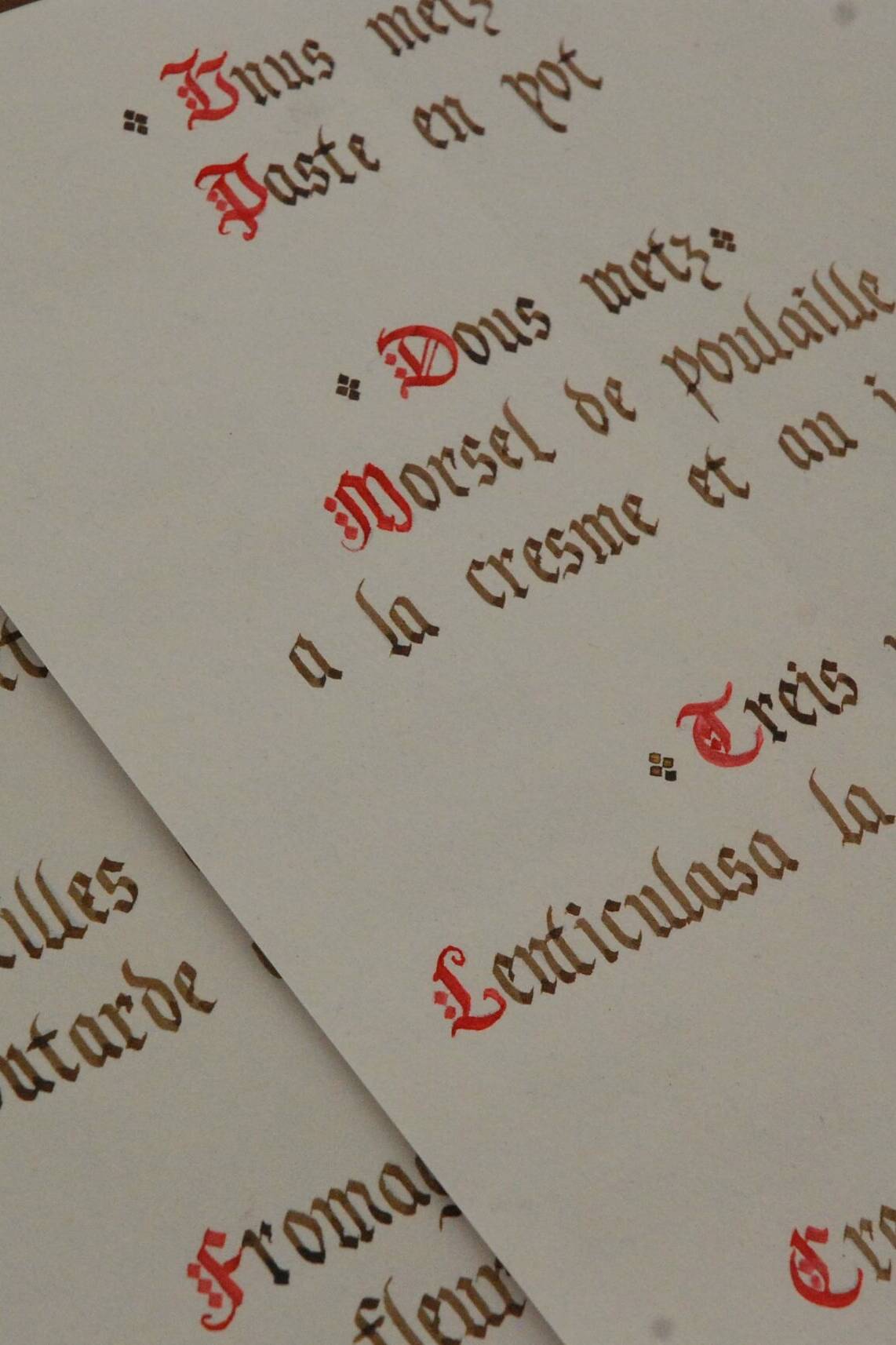 Sur notre campement, nos scribes vous font découvrir l’art de la calligraphie médiévale, cet art de la belle écriture transmis depuis des siècles.