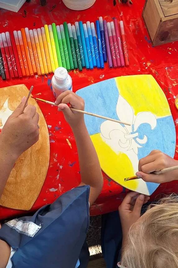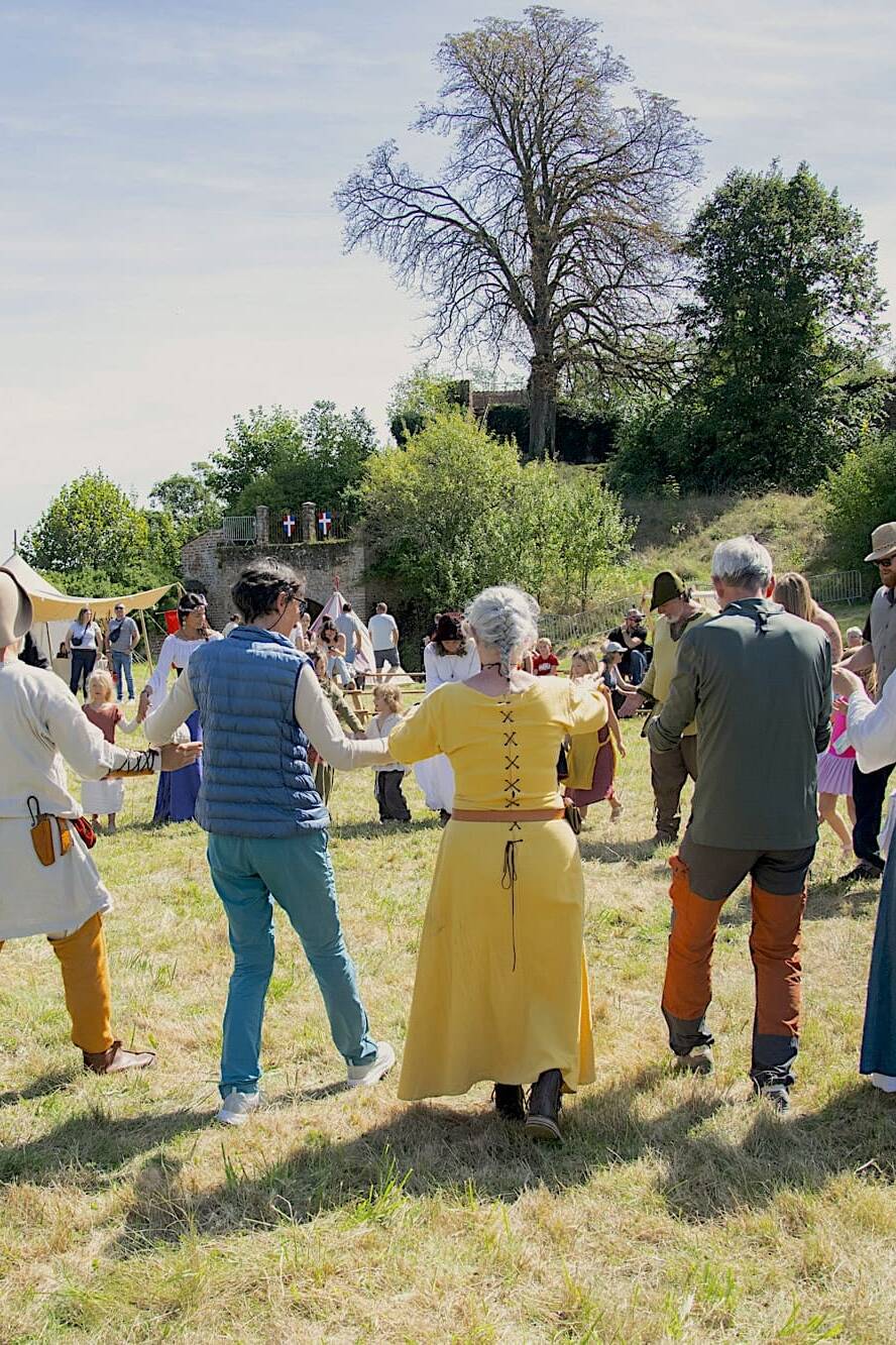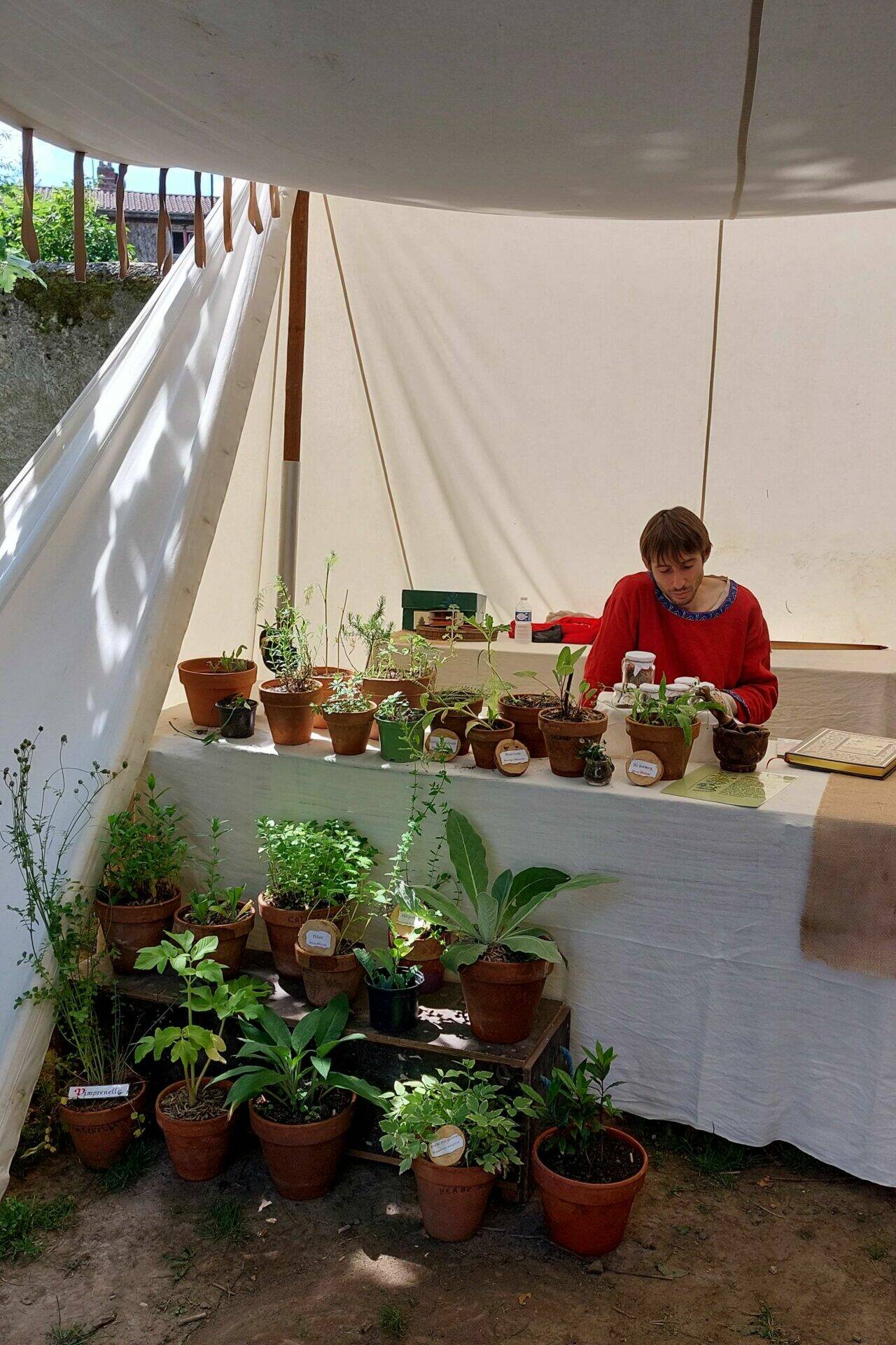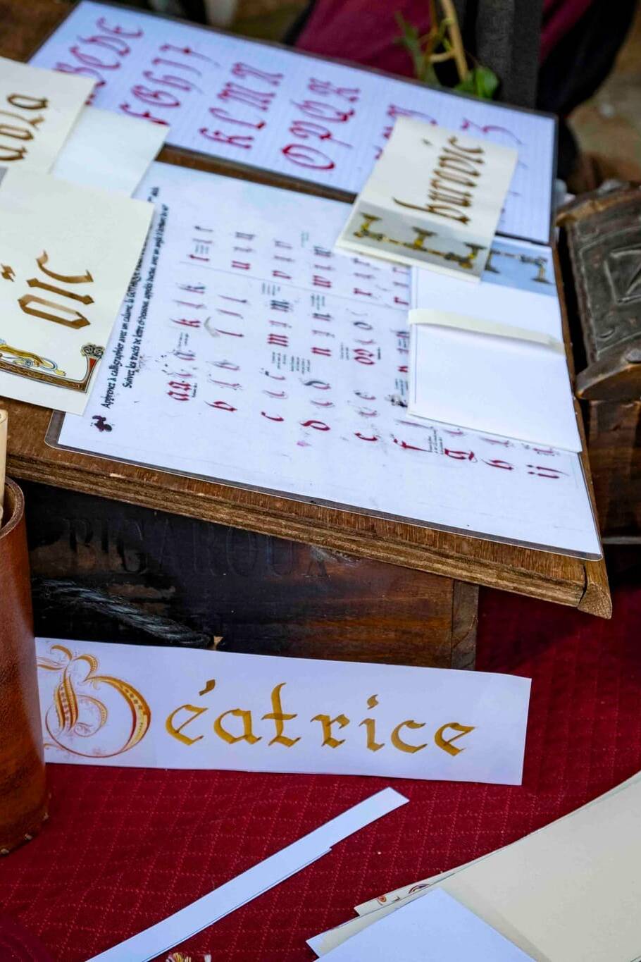Lors des fêtes médiévales, l’artisan du cuir propose des démonstrations de fabrication d’objets en cuir, tout en expliquant les différentes techniques utilisées. Il peut également inviter le public à manipuler certains outils afin de personnaliser des articles tels que des diadèmes ou des porte-clés.
